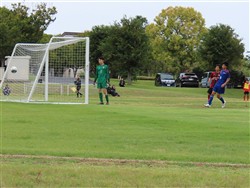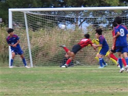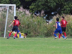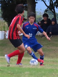 守りのかなめのトミー、得点をねらってドリブルをしかけます
