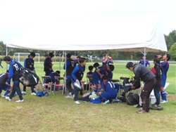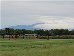 台風22号の影響で曇りの天候の酒田公益大グランド